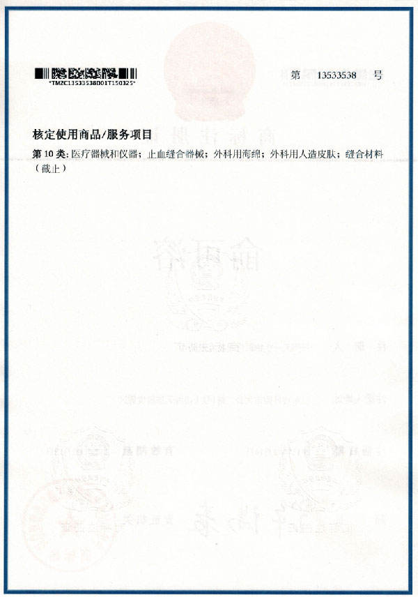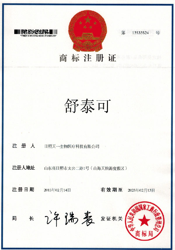 天(tian)一生(sheng)物取(qu)得(de)商(shang)標(biao)註冊證(zheng)
